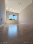 No pavimento superior, você encontra um ambiente amplo e integrado, reunindo sala de estar, sala de jantar e cozinha, todos com acabamento em porcelanato, além de um banheiro social. São três dormitórios, sendo uma suíte aconchegante, com piso em carpete de madeira que traz acolhimento aos quartos.
